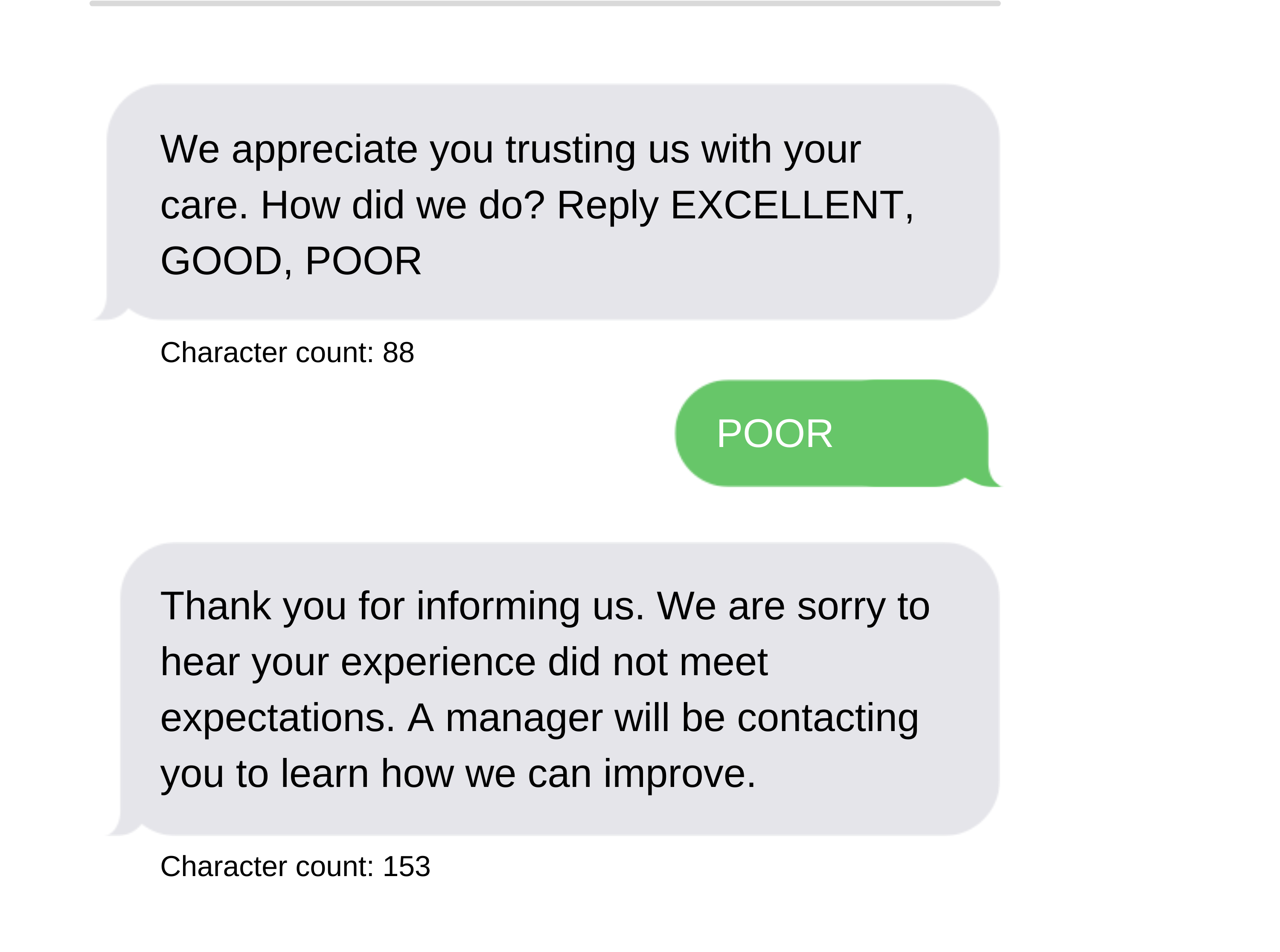 Browse through our Post-Appointment Message Best Practices to explore options for your facility. All text messages are fully customizable.