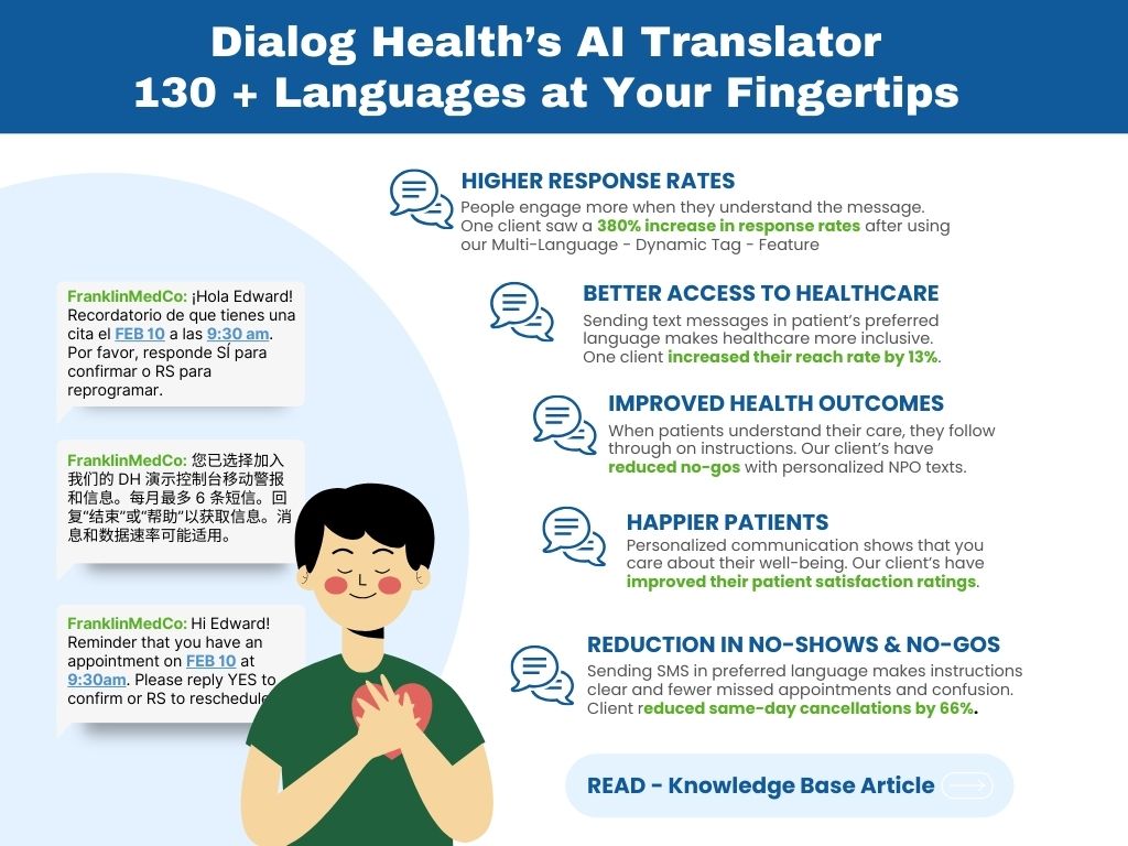Communicating with patients in their preferred language is essential, but traditional engagement platforms haven’t made it easy. While hospitals have invested in translation for in-person care, extending that to mobile messaging has been difficult—often due to limited staff and technical barriers. Not anymore - wait for it.
