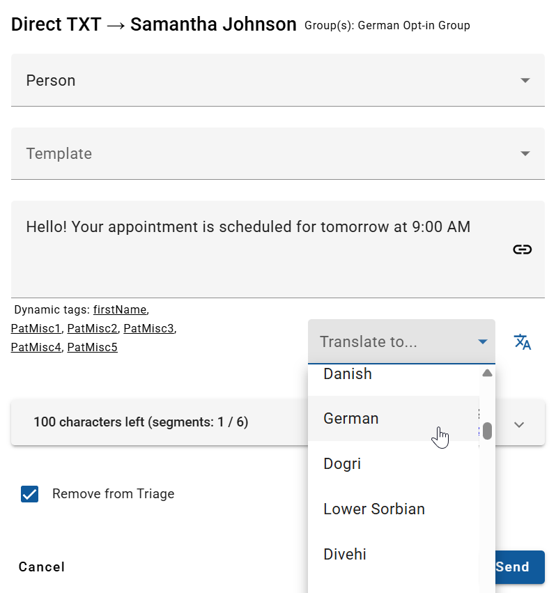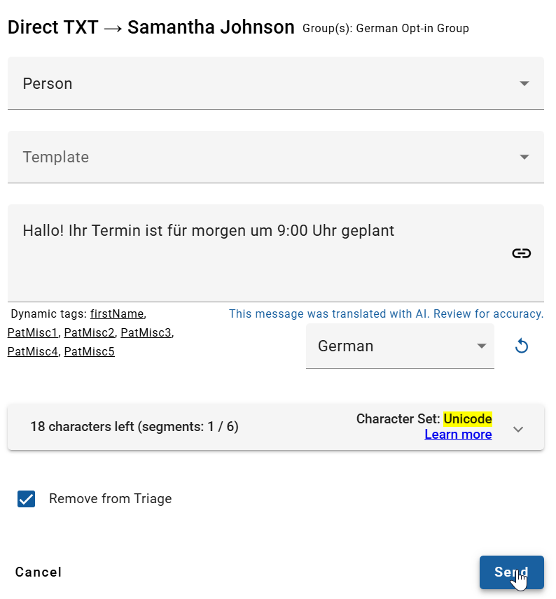 4. Hit Send to deliver the message in the subscriber’s preferred language.